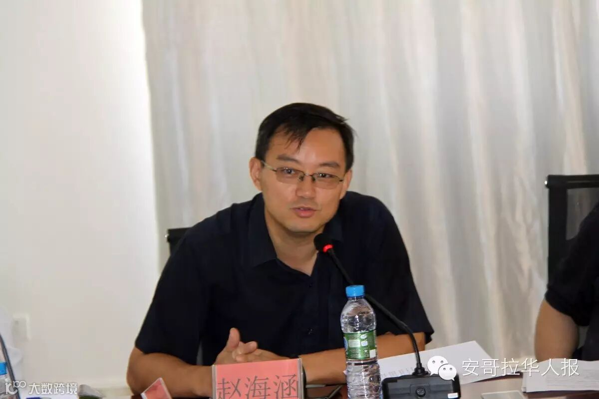 赵海涵在发言中说,在安哥拉经济低迷的背景下,许多在安华商不仅没有撤离,而且积极转型升级,加大了投资,一座座大型商贸城拔地而起。众多商贸城陆续建成投入运营,必将引起各方关注,华商在其他国家和地区都取得了成功,在有些地方成为华商经济的主体,安哥拉的商贸城如何协调彼此关系,探讨联手合作,共同开发好安哥拉市场,是摆在大家面前的一个课题。