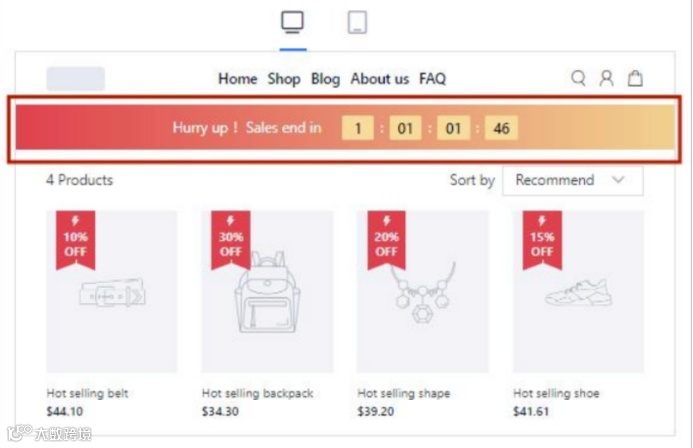Shoptop「限时促销」插件,帮助独立站卖家打造热销氛围,在网页上设置优惠活动倒计时,促销时间的流逝,为独立站营造热销抢购的氛围,刺激用户消费。