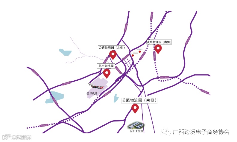 图5—5 南宁跨境电商综试区空、铁、公路联动示意图