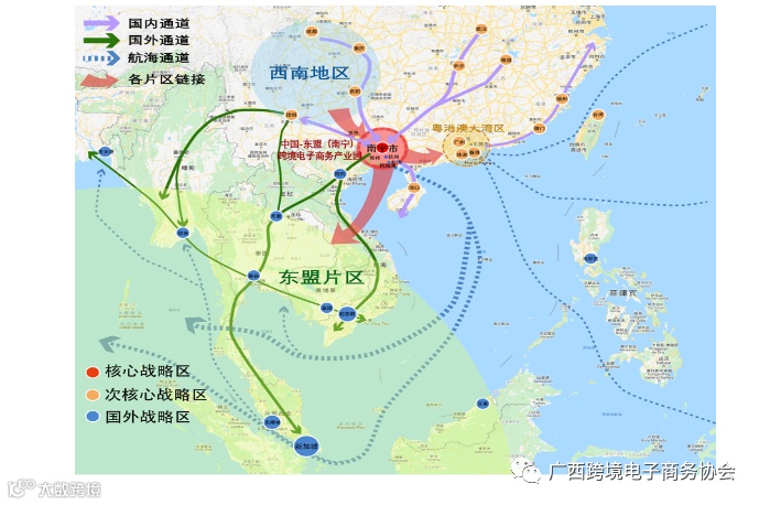 围绕中新互联互通、西部陆海新通道建设任务,统筹跨境服务体系、物流供应链、财税金融、企业培育、创新机制与人才培养等需求,优化空间资源配置,推动广西及中国—东盟自贸区跨境电商产业高质量发展[k]。
