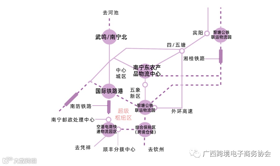 - 以南宁综合保税区为核心,空港、国际铁路港为协同区,打造设施完备的跨境电商园区体系[k]。