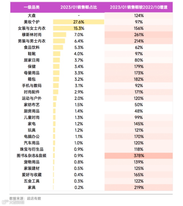 这个赛道真的历久弥新,时至今日仍旧常常霸榜。超店有数统计数据显示,TikTok美妆个护品类今年趋势向好,2023年1月销售额占比居榜单第一。