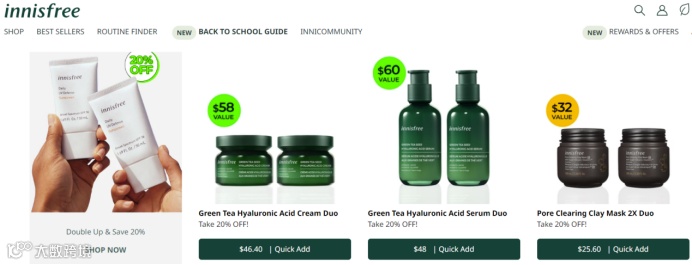 在海外也有一些比较典型的品牌,例如主打成分为温泉水和天然植物的雅漾,收割了一大批敏感肌或寻求温和不刺激产品的用户。韩国的悦诗风吟也常用清新绿色包装,突出其主打的天然植物成分,给人以健康、纯天然的品牌印象。