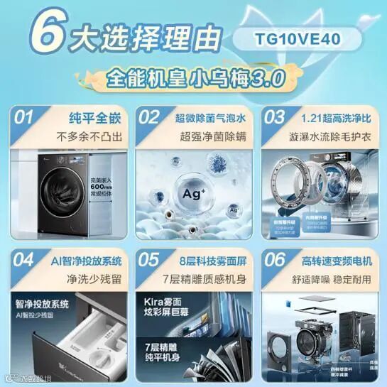 购机建议:如果家庭人口较多,日常洗衣量大,注重洗衣机的容量、能效和外观设计,同时想通过以旧换新和国家补贴享受优惠,这款小天鹅纯平【小乌梅3.0 TG10VE40】滚筒洗衣机是不错的购机方向。