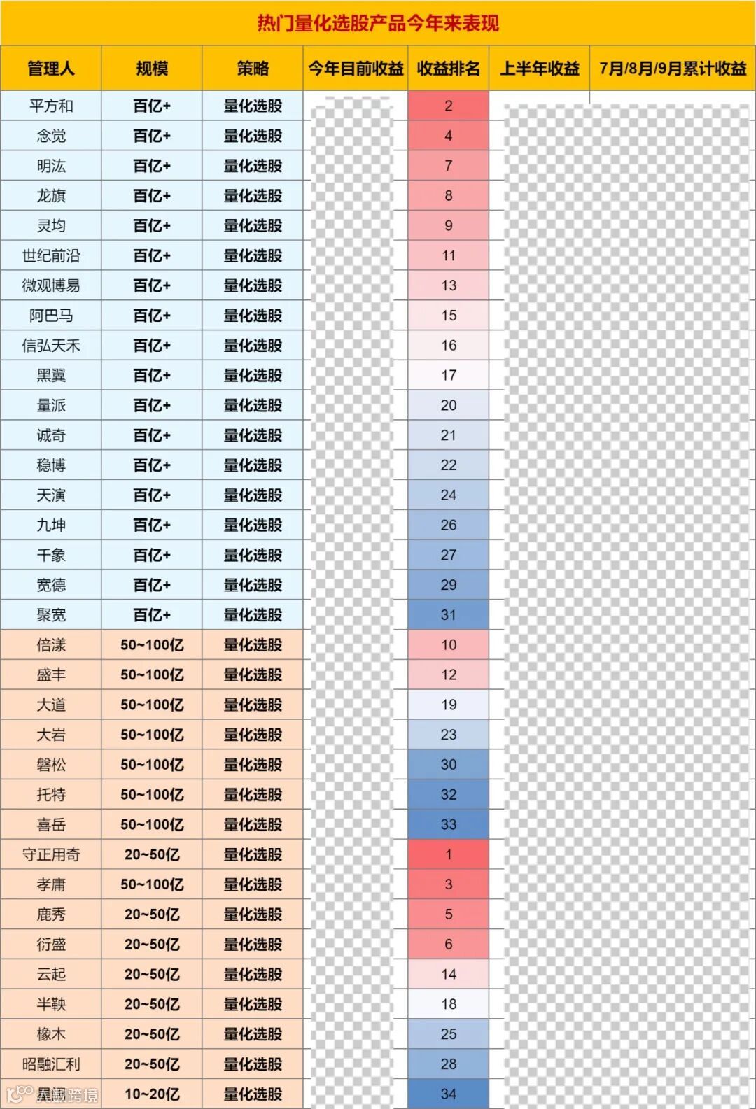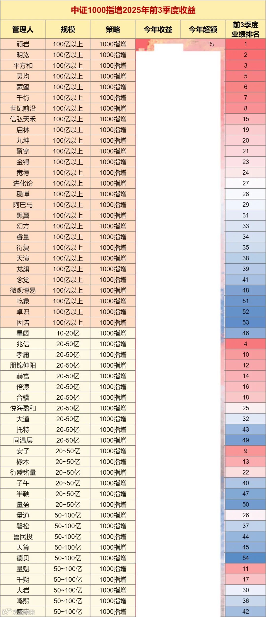 有在上半场靠前的网红被反超,有大厂连续出现负超额,也有突出的机构规模暴涨。