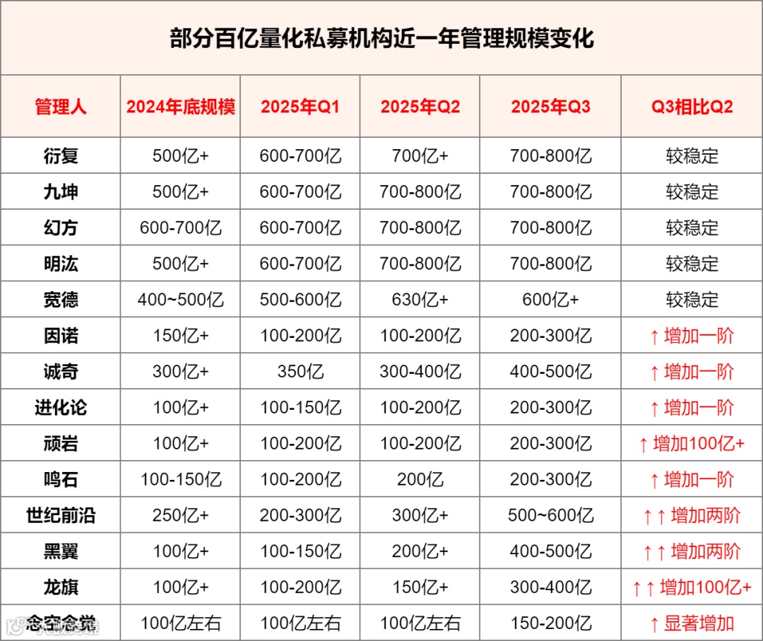 三季度最新量化私募图谱里,量化四巨头(幻方、九坤、明汯、衍复)规模突破700亿,顶级机构吸金能力强悍。