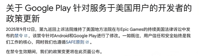公司表示,将依据SAFE原则(具体原则内容未详述,但通常涉及安全、隐私、公平和效率等方面)来保障应用生态的安全。值得注意的是,此次新政策仅限于美国地区,且有效期至2027年,为开发者提供了一个相对明确的政策窗口期。