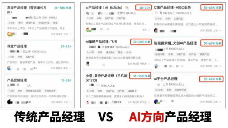 具备AI产品能力的,薪资普遍在40~60k!比传统产品岗高出不止一截!有的产品人早就转行AI方向,早已拿到百万年薪offer!