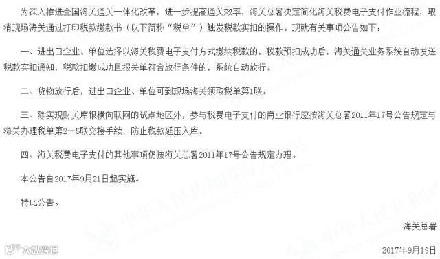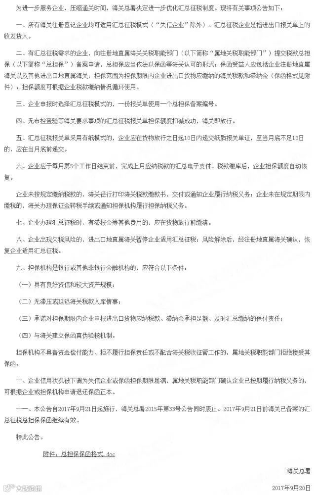 依据海关总署公告2017年第45号,汇总征税制度全面升级,惠及更多企业[k]。