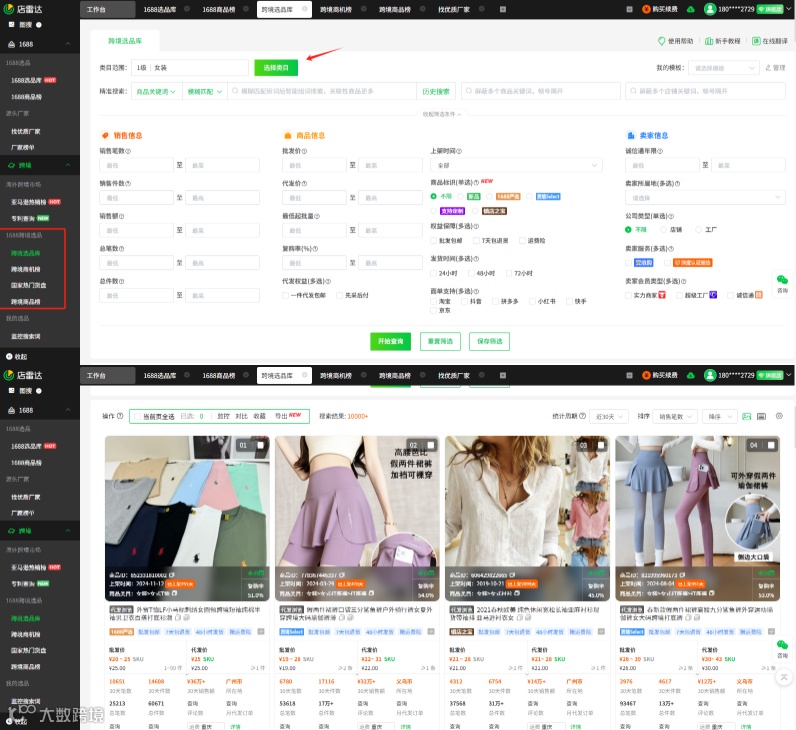 可以利用选品工具店雷达1688跨境选品库筛选各大类目的优质货源,通过输入批发价、代发价等条件,优先选择标注“超级工厂”或“实力商家”认证的供应商,快速找到具备价格优势和发货保障的商品。