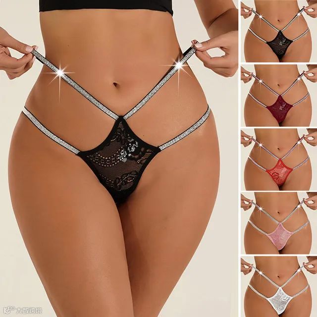 Floral Lace Mesh Thongs, Hollow Out Breathable Double Ribbon Panties, Women's Lingerie & Underwear