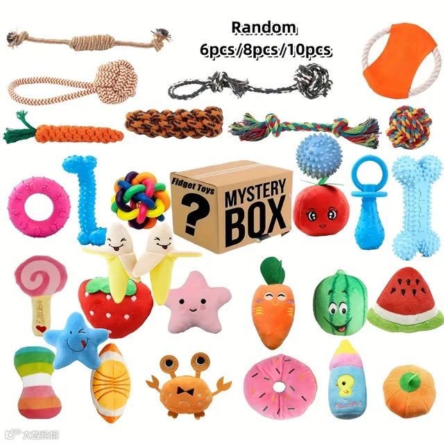 6/8/10pcs Random Types Pet Grinding Teeth Squeaky Plush Toy Durable Chew Toy For Dog Interactive Supplies