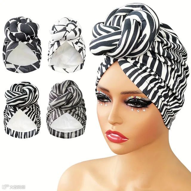 Pre-Made Knotted Turban Hat Trendy Zebra Print Suede Head Wraps Elegant Pleated Beanies Ramadan Headscarf For Women