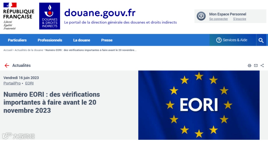 法国海关计划在2023年11月20日之前进行验证,并将自动停用与无效SIREN/SIRET相关联的EORI号码。