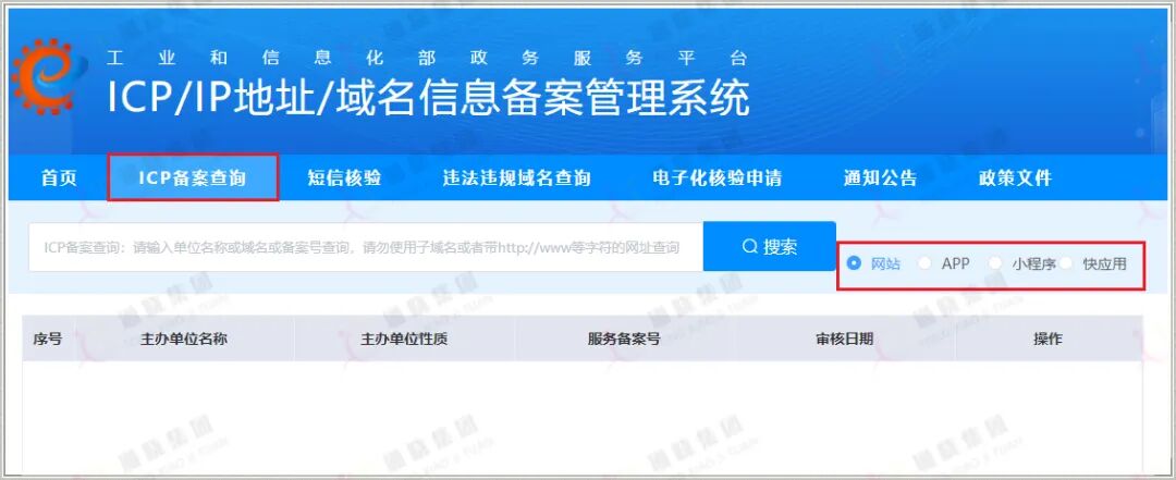 查询指引:工信ICP/IP地址/域名信息备案管理系统→ICP备案查询