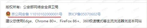 下载备案编号图标和复制备案编号HTML代码,让技术人员悬挂在网站首页底部位置,放在ICP备案之前位置。