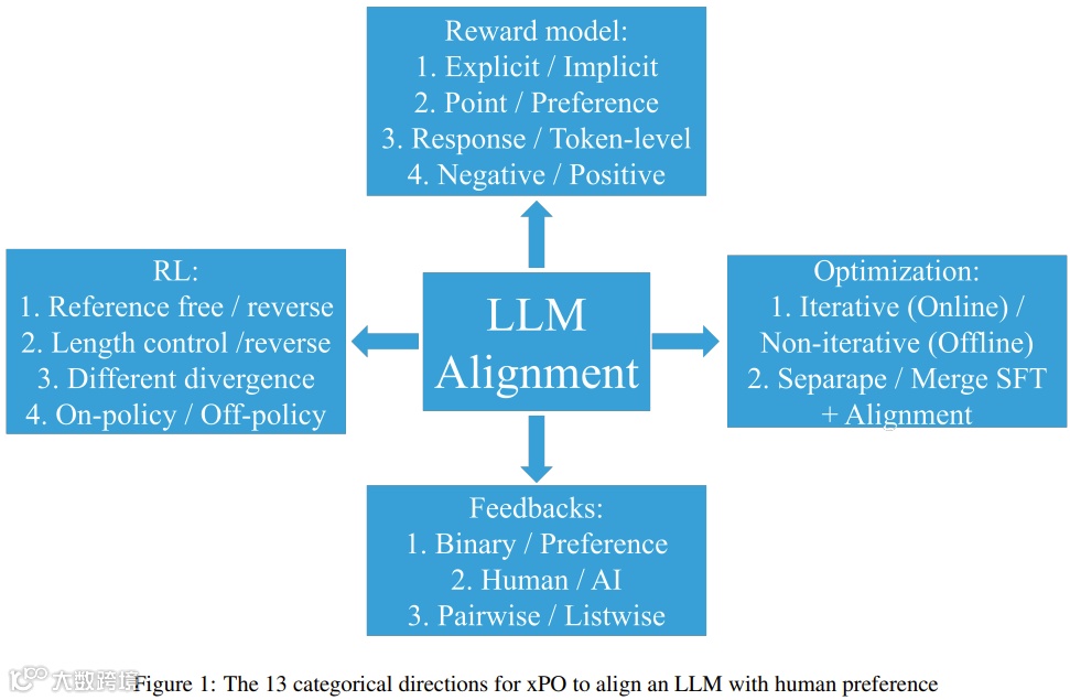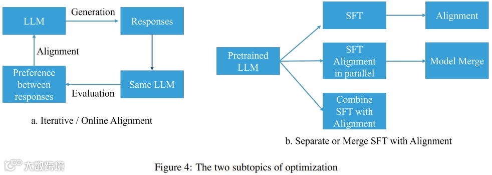 优化方向则包括在线/迭代式与离线/非迭代式偏好优化、SFT与对齐的分离与合并策略[k]。