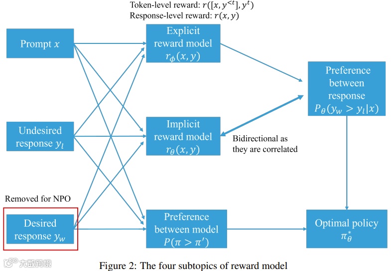 在奖励模型方面,分类包括显式与隐式奖励模型、逐点与偏好模型、响应层面与token层面奖励,以及负偏好优化[k]。
