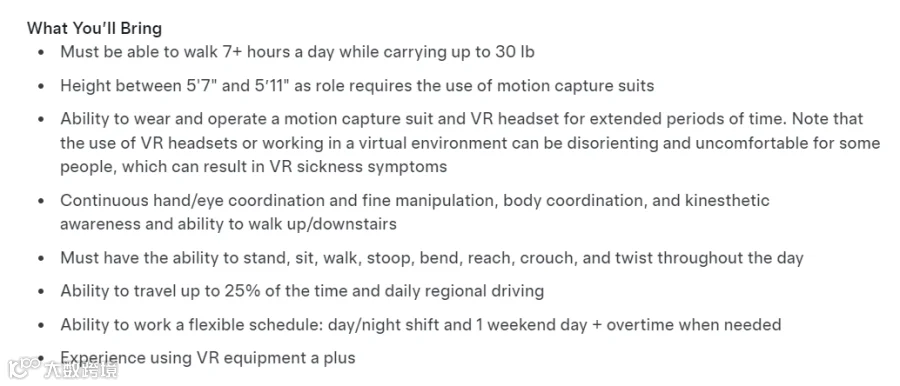 单日需穿戴动捕服工作7小时以上,最高时薪达48美元