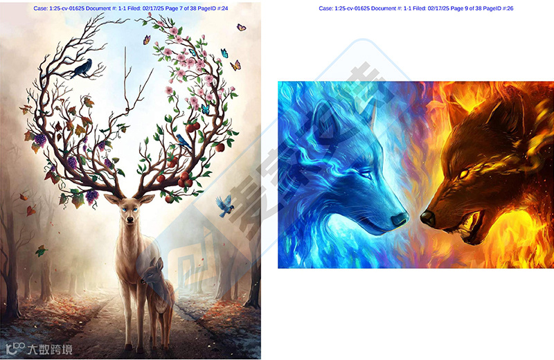 本案为近年来委托keith律所发起过数十次维权的德国艺术家Jonas Sebastian Jodicke发起的全新案件,该原告历史曾TRO成功冻结超2000个涉案店铺,杀伤力极强,可谓版权TRO毒王!作为25年的首次维权,共涉及18个版权作品,跨境卖家需注意排查,原告作品被广泛运用于钻石画套件、金属印刷品、拼图、毯子、床上用品、文具等多个领域,未经授权使用就会面临TRO冻结风险。