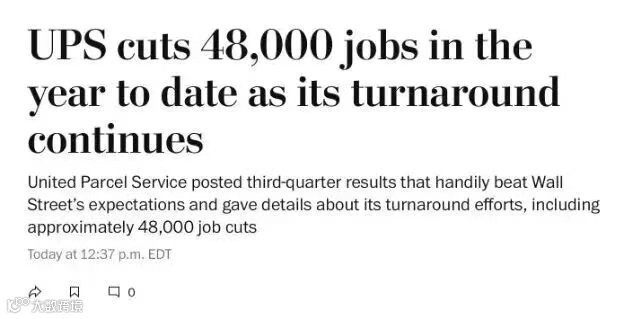 近日,物流巨头UPS宣布今年以来已裁减3.4万个运营岗位,超出此前预期,加上2024年底裁减的1.4万个管理岗位,累计裁员达4.8万人,成为其史上最大规模成本削减计划的一部分。