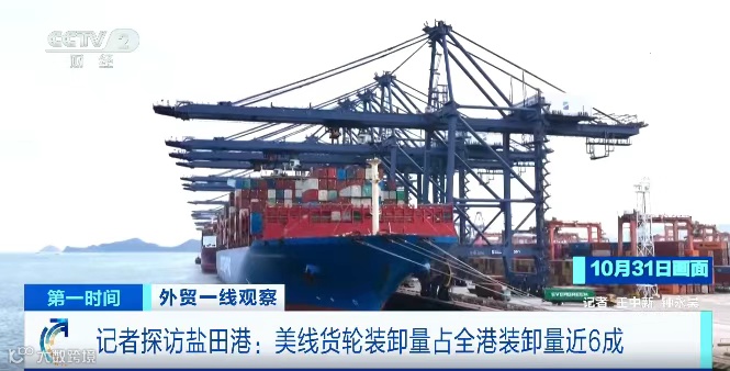 深圳盐田港承担着全国对美出口超1/4的货量。据了解,10月31日在泊的美线货轮一共8艘,装卸量达5w个标准箱,占当天全港总装卸量的近六成。
