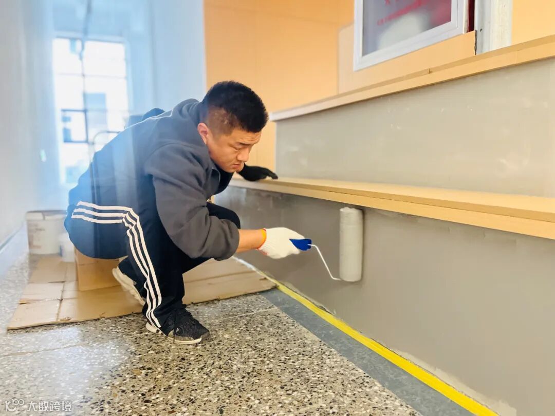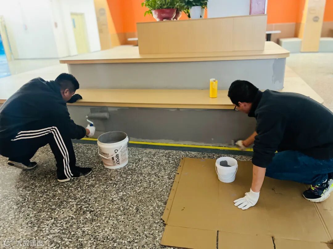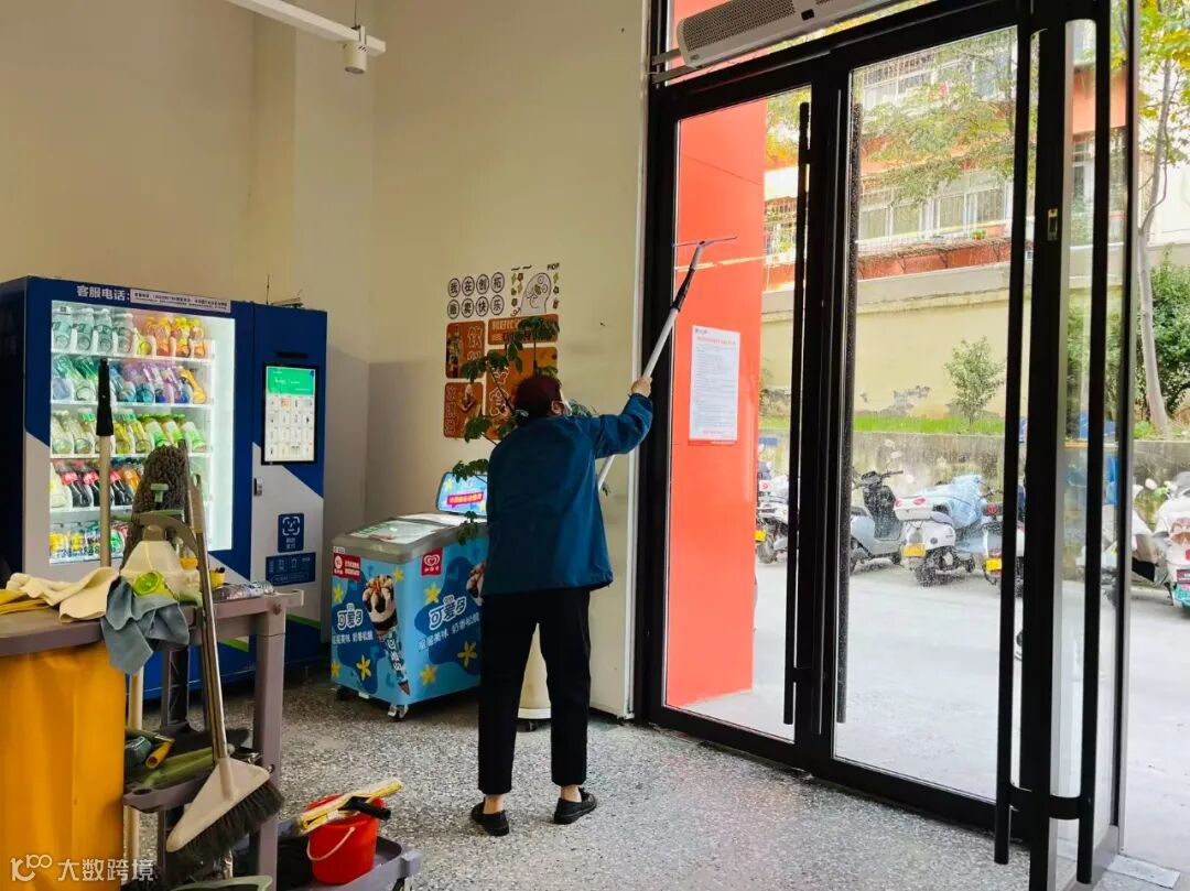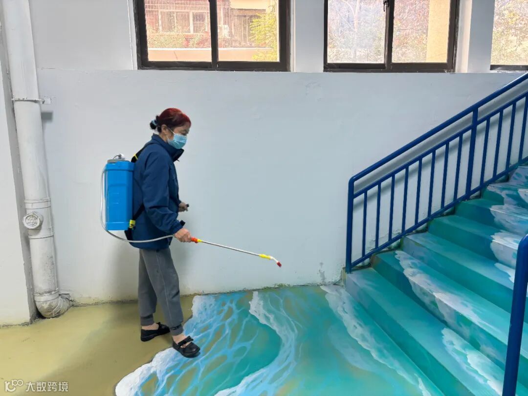 她们手持清洁工具