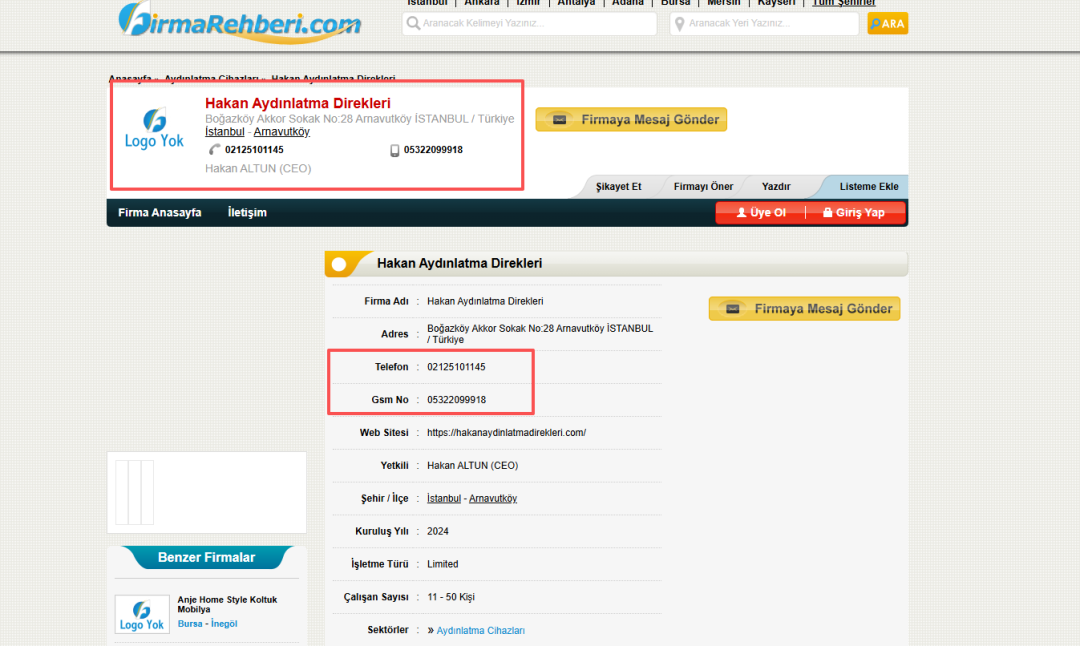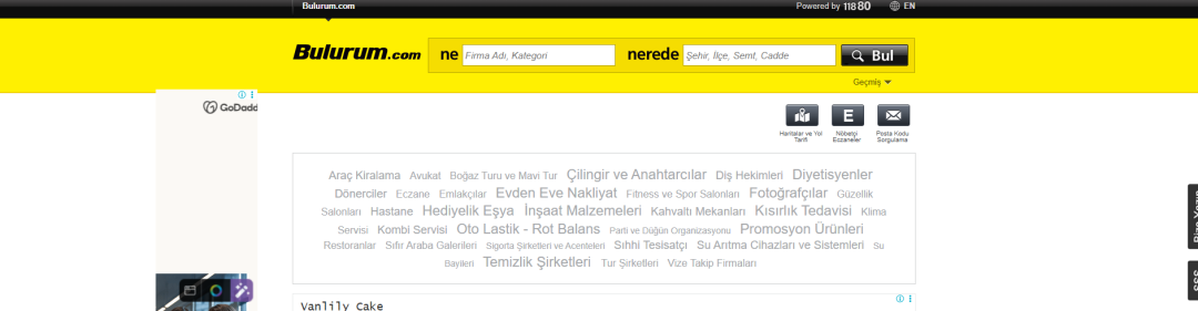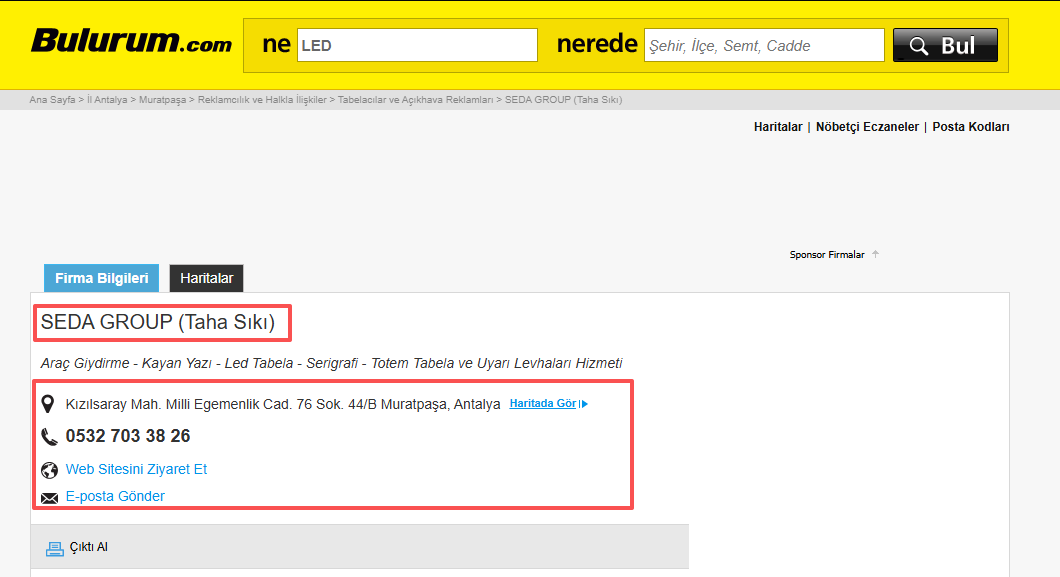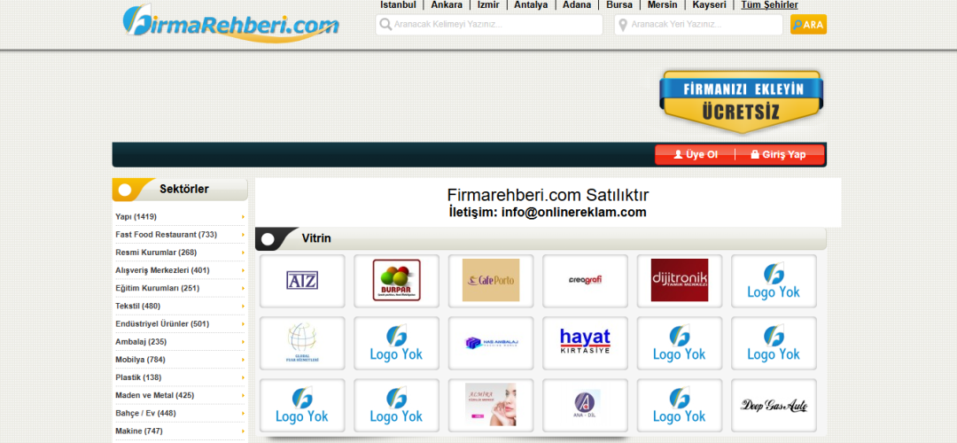 这是一个土耳其本地企业名录网站,可以查询部分当地公司的详细资料。平台自带行业分类目录,用户既可以通过分类浏览,也能直接输入关键词搜索。