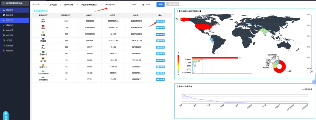 使用建议:可搭配海关数据查询产品在公司的进出口情况,和哪些国家采购商合作最多,分析行业情况,做市场分析。