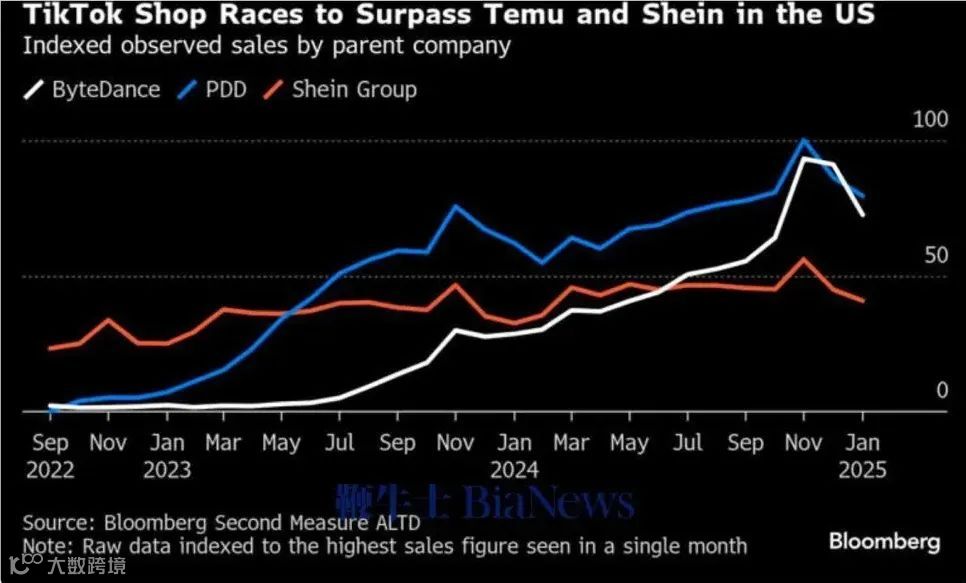 据悉,2025年1月TikTok Shop美国销售额同比激增153%,远超SHEIN(26%)和Temu(28%)的增速。