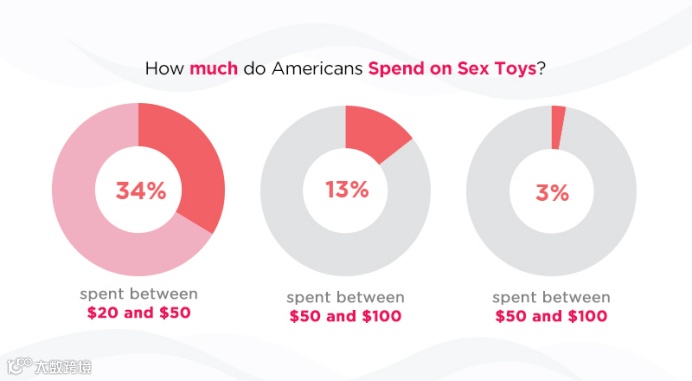 除此之外,还有一些全美范围内有关于成人用品支出的事实性数据,比如:44.2%的人每年都会购买恋物癖装备;单身人士每年在性产品上的花费比恋爱中的人少3.5%;22.3%的人不购买润滑油或其他性护理产品;30.9%的人每年在性玩具上的花费不到50美元;41.9%的人每年在避孕上的花费为0美元。