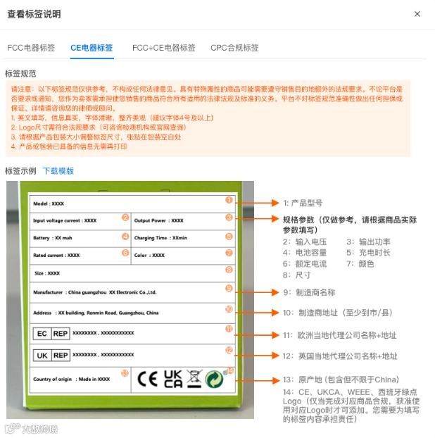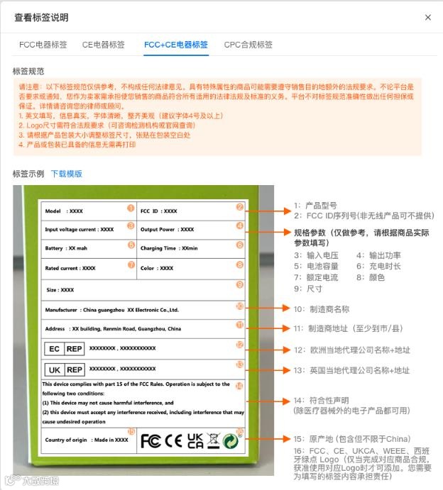 为促使卖家销售的商品满足欧美等市场当地法律法规对产品资质的合规要求,平台将加强对销往欧美等市场商品的FCC/CE认证资质—标志标签的核查。