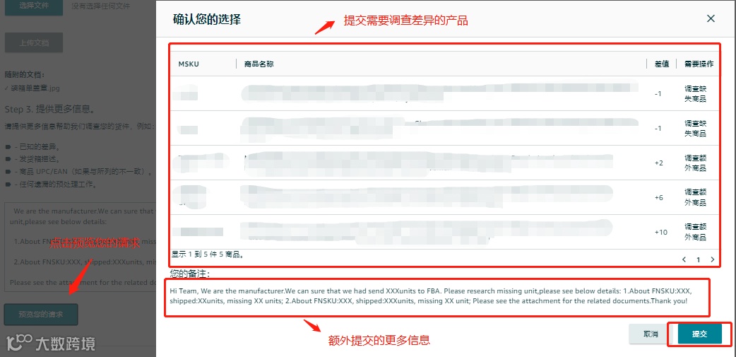 1.对于任何其他差异,您可以请求销售伙伴支持进行调查。在所提供的表格中说明差异。此信息有助于亚马逊尽快完成调查并解决问题: