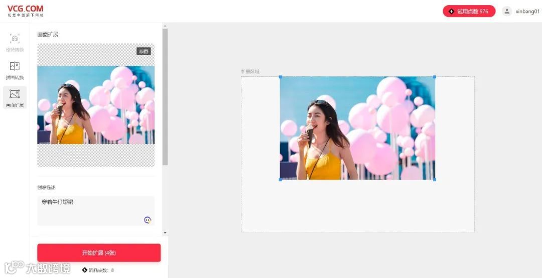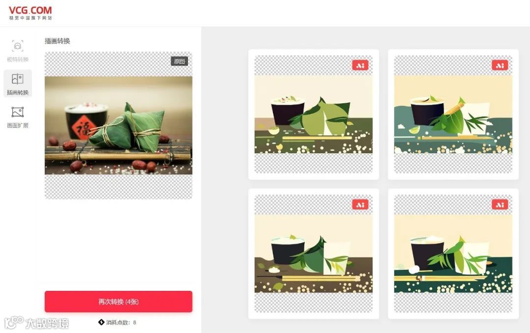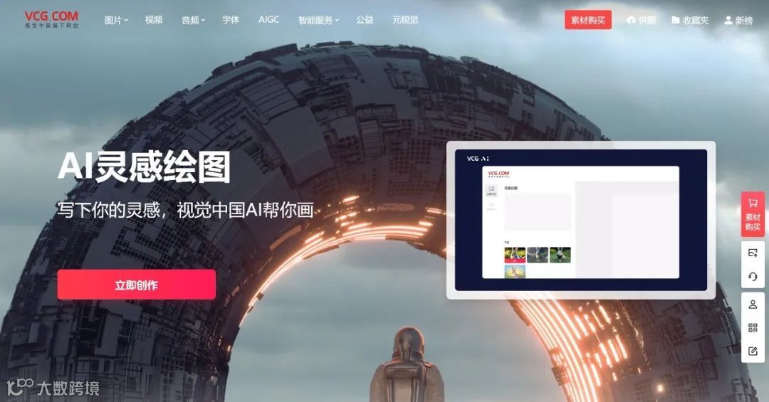 自2025年5月起,视觉中国在其官网vcg.com陆续推出AI智能搜索、模特转换、插画转换、AI灵感绘图(文生图)及画面扩展(OutPainting)等多项AIGC功能[[k]]。