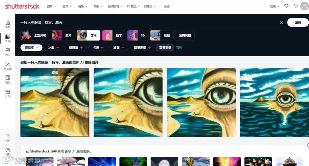 全球图库平台对AI态度分化。Shutterstock早在2024年10月即与OpenAI合作,将DALL-E 2集成至平台,并设立“贡献者基金”向被用于训练的数据提供者分配收益[[k]]。
