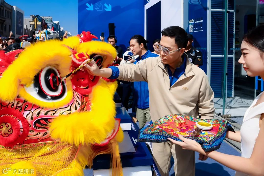 甄子丹为斯凯奇中街旗舰店开业舞狮点睛
