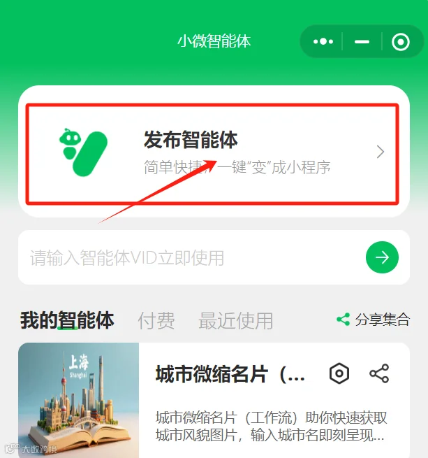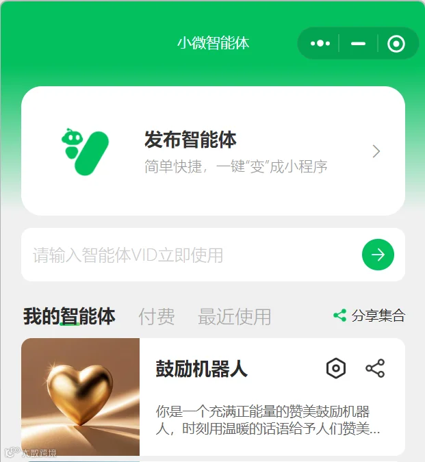 成功绑定后,可在小程序中查看并发布已创建的智能体。只需一次配置,后续所有智能体均可通过该通道发布与管理。[k]