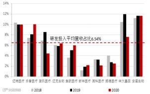 产品性能达标是打开海外市场的关键[k]。全球前十医疗器械企业2019-2021年研发投入占营收比重超9%,年均投入超30亿美元[k]。强生、波士顿科学等研发投入超10%,产品约每18个月迭代一次[k]。反观国内前十企业同期研发投入占比仅6.5%,绝对金额约4亿元,约为全球头部企业的1/8[k]。