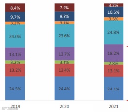 2019年中国人均药品支出213美元,医疗器械人均支出69美元,分别为美国的1/5和1/7。药械消费比为1:0.35,远低于全球平均1:0.7和发达国家1:0.98水平[k]。主要受限于研发能力不足、创新薄弱及成果转化能力弱等问题。