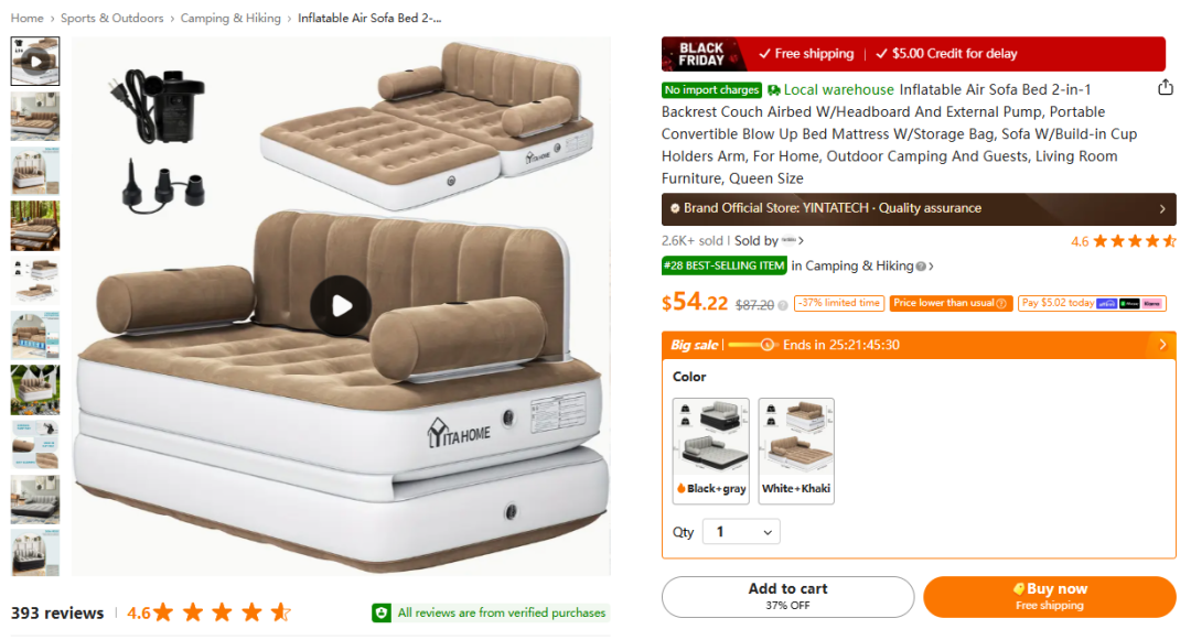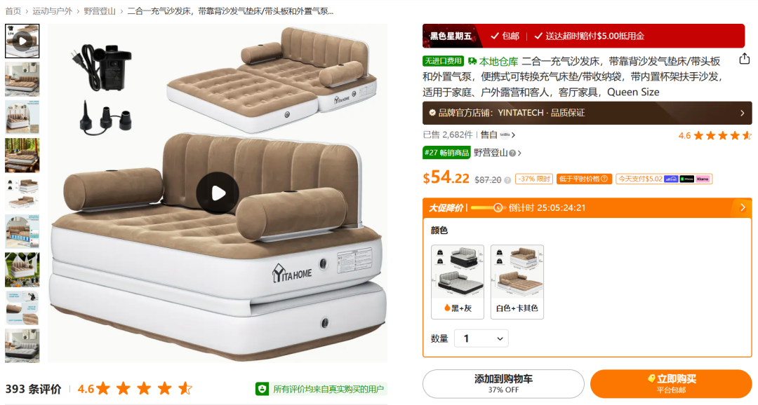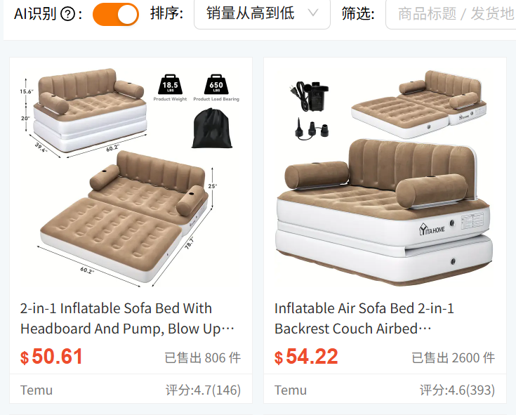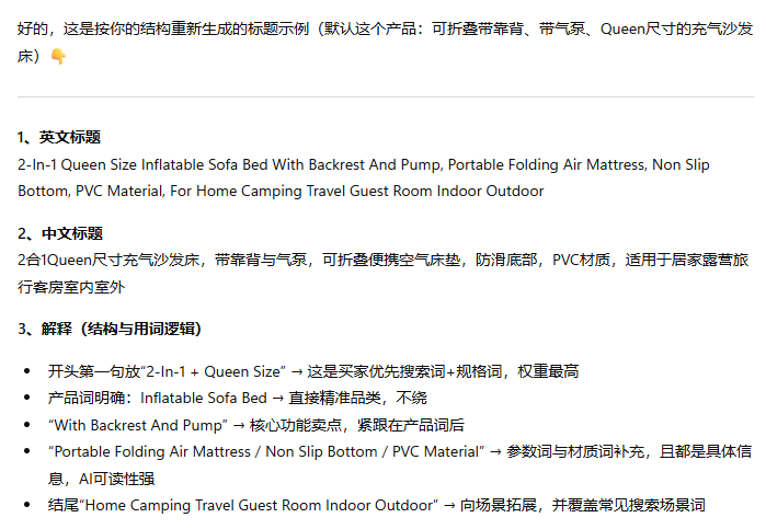 举个例子,上面这个充气沙发床产品的标题,已经包含了我们前面讲的几种元素: