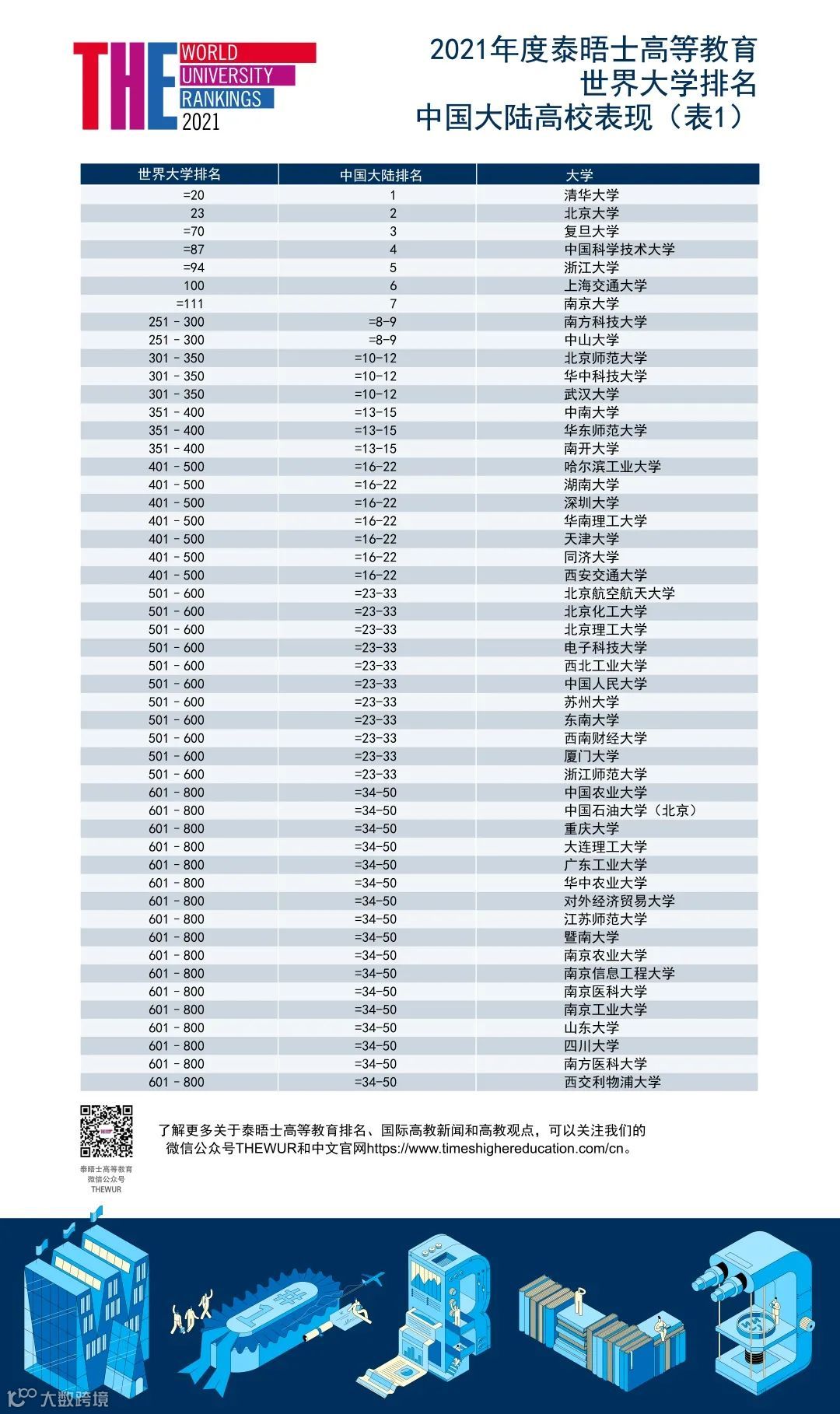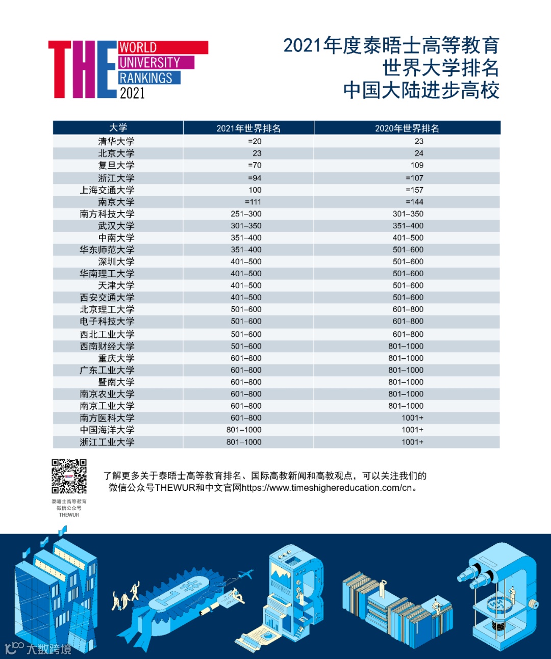 2021泰晤士世界大学排名发布:清华首入全球前20,中国大陆高校表现亮眼