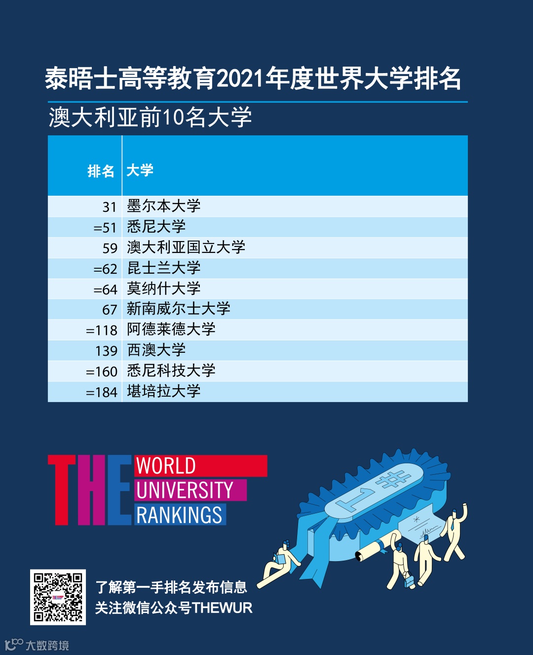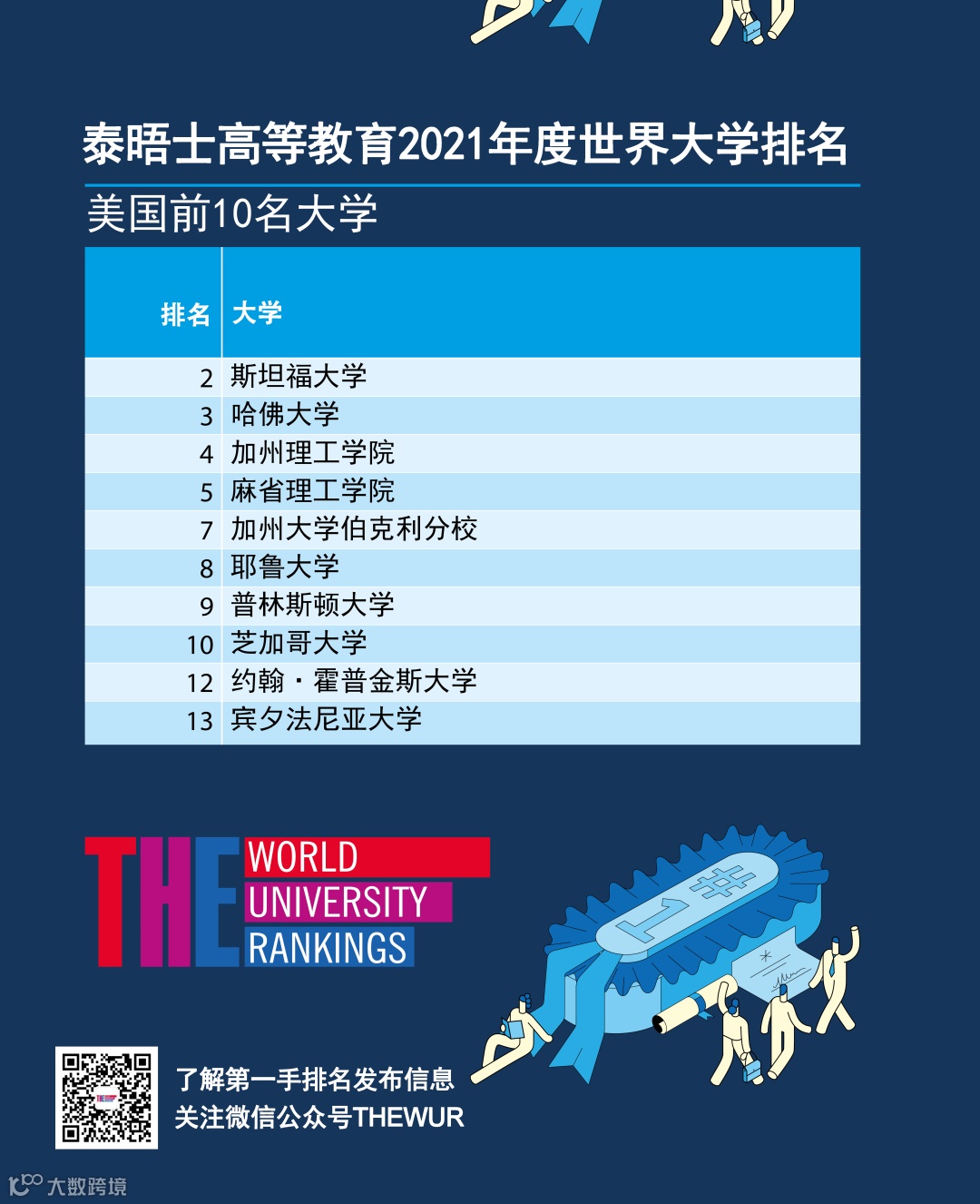 2021年排名中,141所高校首次入榜,其中印度14所、美国13所、中国大陆10所。巴黎萨克雷大学(并列第178位)为新晋高校中排名最高。博茨瓦纳大学首次代表非洲南部国家进入排名[k]。