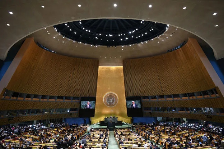 这是2025年9月22日在位于纽约的联合国总部拍摄的联合国大会纪念北京世妇会30周年高级别会议现场。新华社记者 李睿 摄