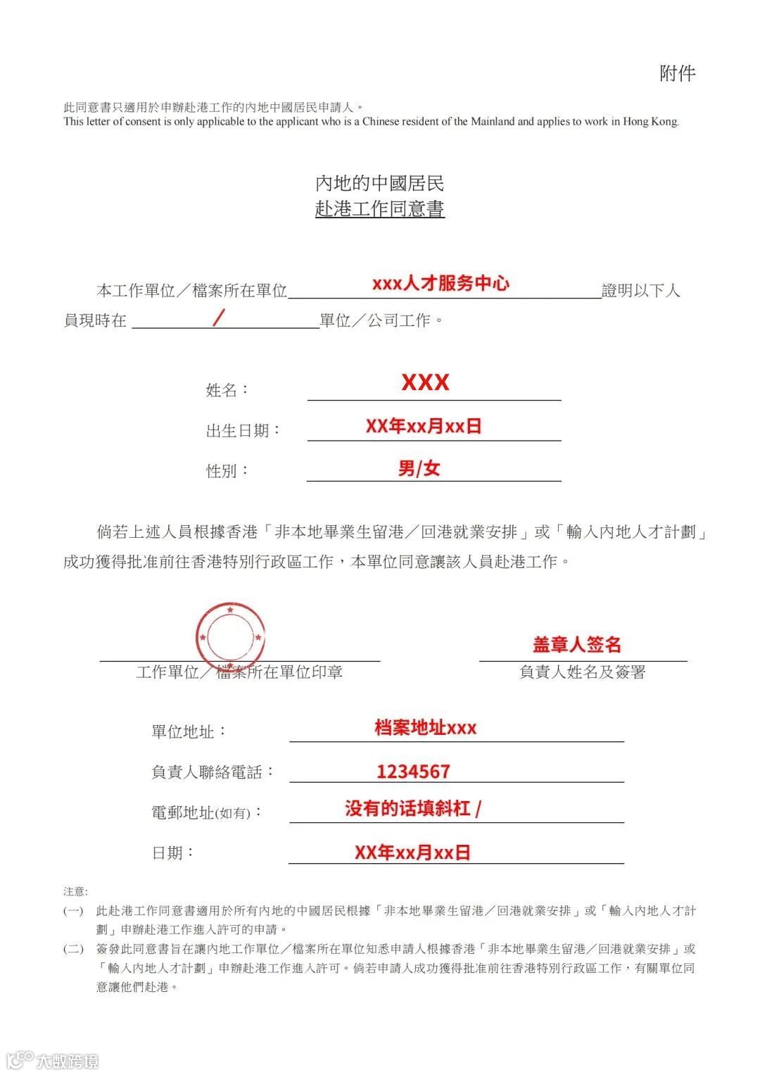 港府这份文件的字面意思是,要你的档案所在单位来签署盖章这份文件,证明一下这个单位同意你来港工作。
