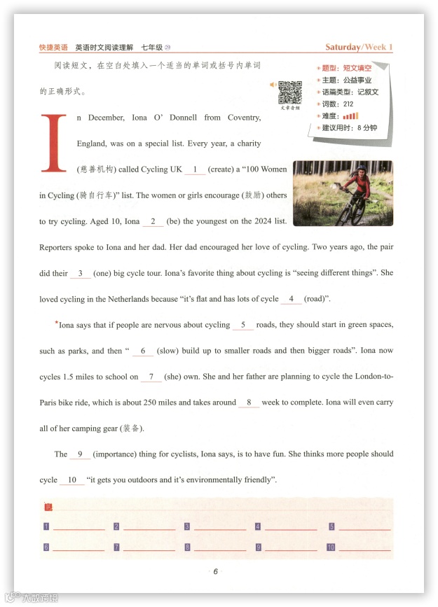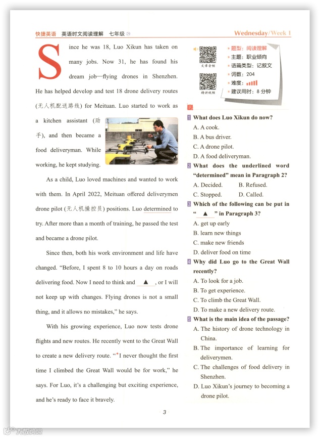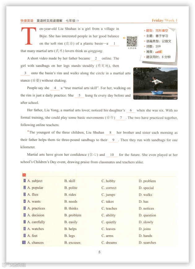 12、26版初中英语7-9年级《一本完形填空与阅读理解》含答案下载链接: