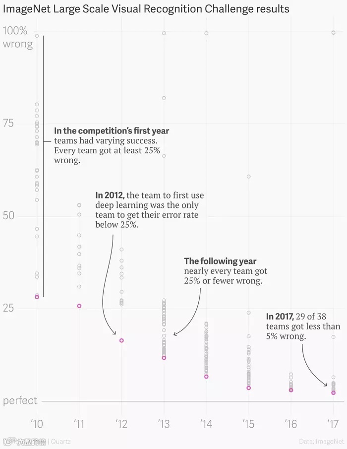 在最后一届ImageNet挑战赛中,中国团队表现抢眼,CUImage、Trimps-Soushen、CUvideo、HikVision、SenseCUSceneParsing和NUIST包揽六个项目冠军,创下赛事历史上首次由中国团队主导的辉煌战绩[k]。然而,赛事的繁荣背后也引发广泛争议:新兴任务如场景解析与场景分类在预训练模型使用上存在分歧;多数优胜方案依赖高昂计算成本的模型集成(Ensemble Model);大型机构凭借资源优势“刷榜”,偏离了推动技术创新的初衷。这些现象或成为主办方于2017年后停办比赛的重要原因[k]。自2015年ResNet问世以来,诸多改进模型相继涌现,包括DenseNet、MobileNet及ResNeXt等,推动模型结构持续优化。尽管ResNeXt结构更简洁、计算效率更高,但在2016年ImageNet挑战赛中仍不敌集成模型,仅获一项亚军。直到2017年,颜水成团队提出的双通道网络DPN,结合ResNet与DenseNet优势,在降低200层ResNet计算量57%的同时夺得冠军,打破了“堆模型”的局面[k]。颜水成早于2014年便率队赢得ImageNet目标检测冠军,其采用的Network in Network(NIN)结构中1×1卷积已成为现代视觉模型的标准组件,并影响GoogleNet、ResNet等经典架构[k]。自2010年起,颜水成共斩获10项计算机视觉重要赛事冠亚军,包括2012年Pascal VOC最后一届冠军。他亲历了2012年AlexNet的崛起,自此投身深度学习研究[k]。颜水成曾于微软亚洲研究院实习,师从张宏江,同期实习生余凯、孙剑等人日后也成为ImageNet冠军团队核心成员。2006年赴UIUC黄煦涛门下从事博士后研究,受其“Just be yourself”理念影响,确立以ICCV、CVPR顶级会议发表与视觉竞赛为抓手的发展路径。至2015年进入产业界前,其领导的新加坡国立大学机器学习与视觉实验室(NUS-LV)已跻身全球顶尖视觉团队之列[k]。DPN正是颜水成结合产业需求、注重低能耗落地的成果。他强调,比赛意义在于验证创新思想,而非单纯追求排名。AlexNet、GoogleNet、VGG、ResNet、DPN等源自ImageNet的基础模型,对视觉领域产生了深远影响[k]。谈及ImageNet挑战赛的终结,颜水成认为,每一项赛事都承载技术发展的期望,但数据集终有局限。尽管竞赛落幕,物体检测等任务的研究仍将延续[k]。2017年7月,CVPR在美国夏威夷召开,最后一届ImageNet挑战赛研讨会同步举行。李飞飞发表题为《ImageNet—Where have we been?Where are we going?》的主题演讲,回顾赛事八年历程[k]。李飞飞指出,ImageNet最大的贡献在于转变研究范式——数据成为推动人工智能发展的核心要素。“数据重新定义了我们对模型的思考方式。”她强调,尽管挑战赛终止,ImageNet数据集的维护与研究将持续推进[k]。随着单标签图像识别问题趋于解决,李飞飞正致力于构建面向视觉理解、视觉关系预测等更复杂任务的新数据集,探索视觉AI的下一站[k]。ImageNet的谢幕,标志着一个时代的结束,也开启了视觉研究的新征程。正如亚瑟·克拉克所言:人,掌握了过去,接着要探索未来。[k]。