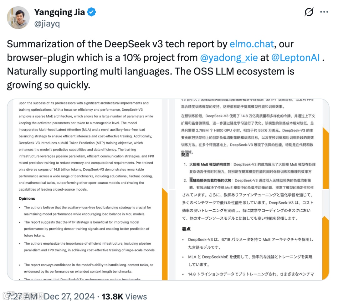 贾扬清曾在社交平台分享对DeepSeek等模型的分析,强调“智慧与务实”在AI研发中的价值,其最新动态停留在2025年3月中旬[k]