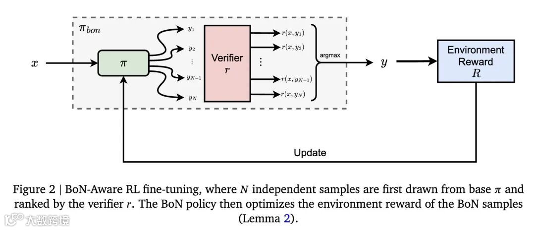 创新:提出了推理感知微调的范式,并针对BoN策略,设计了基于模仿学习和强化学习的BoN感知微调算法,克服了BoN中不可微的argmax操作符的挑战。 此外,文章还实证分析了BoN策略中样本数量和温度的协同缩放关系。