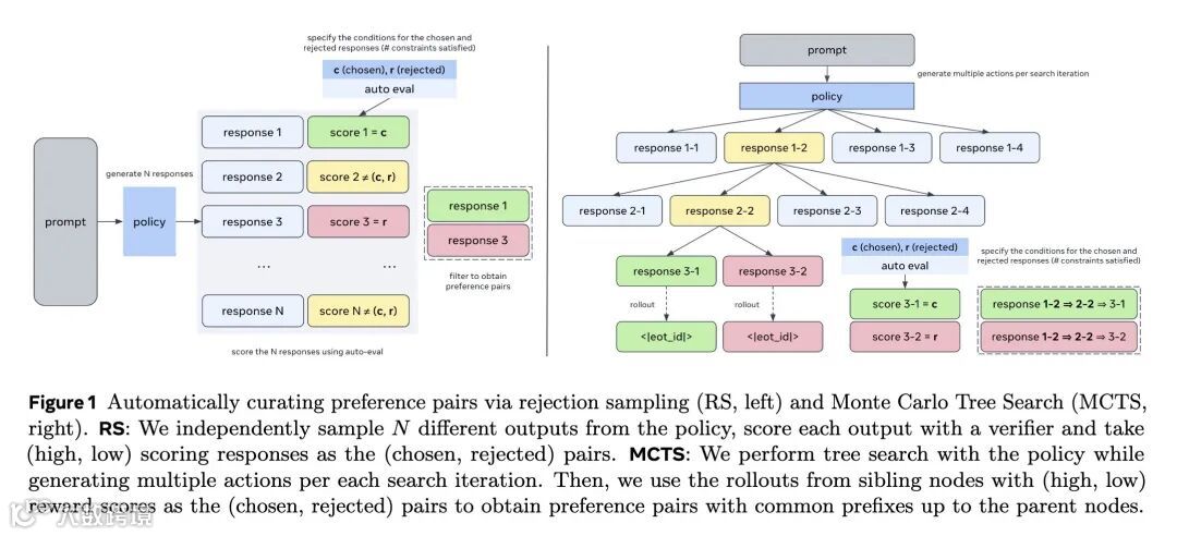 创新:提出了一种新的合成数据生成流程,用于生成具有可验证约束的指令遵循提示,并系统地研究了共享前缀、响应对比度/质量和提示难度这三个关键维度对模型性能的影响。 使用了MCTS方法生成具有共享前缀的偏好对,这在以往研究中较少见。