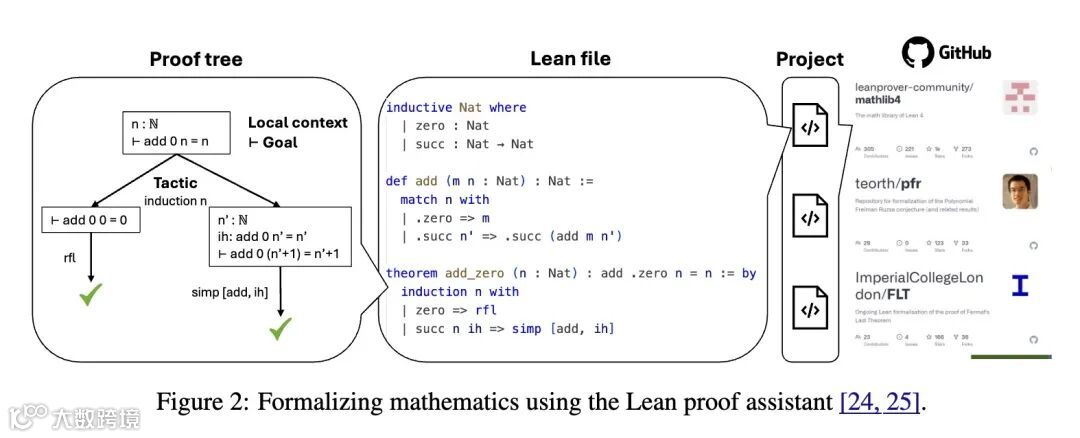 形式化数学推理的潜力:本文倡导转向基于形式化系统的形式化数学推理,例如证明辅助工具(Lean、Coq、Isabelle)。这些系统允许对推理进行严格验证并提供自动反馈,从而减轻数据稀缺和幻觉问题。 -